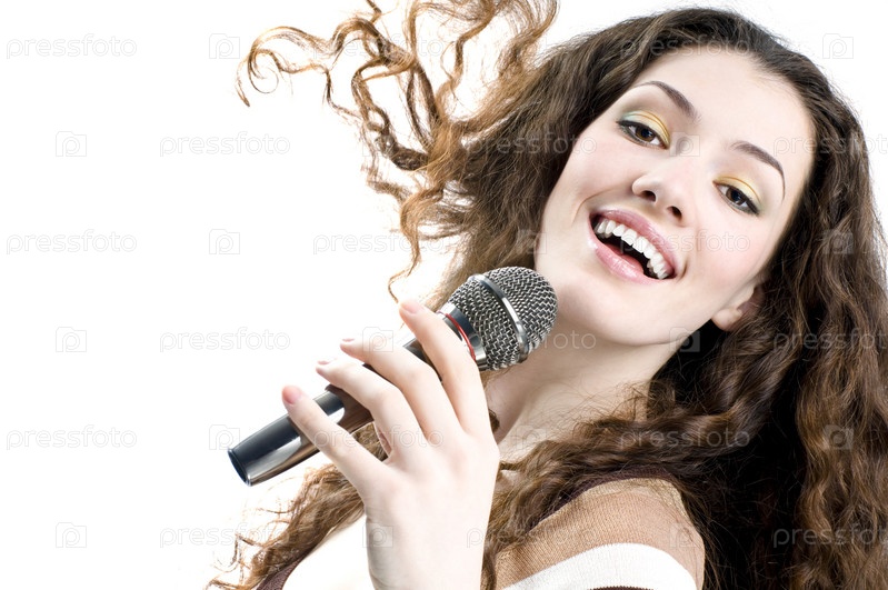 Красивая девушка поет на вечеринке