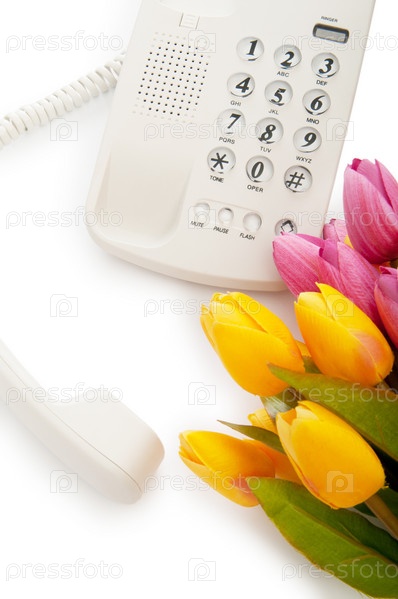 Белый телефон и цветы