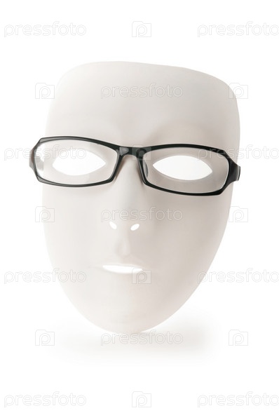 Маска в очках на белом фоне