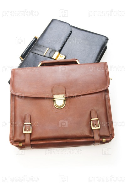 Два кожаных портфеля на белом фоне