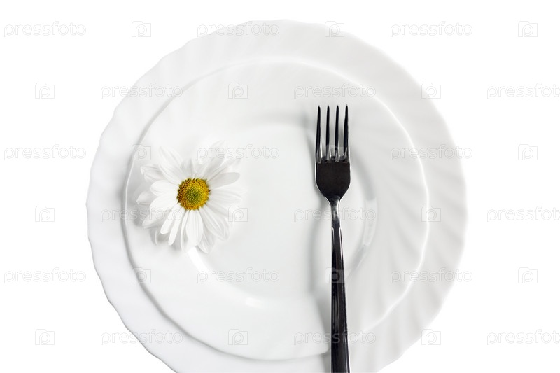 Тарелка с вилкой и цветком