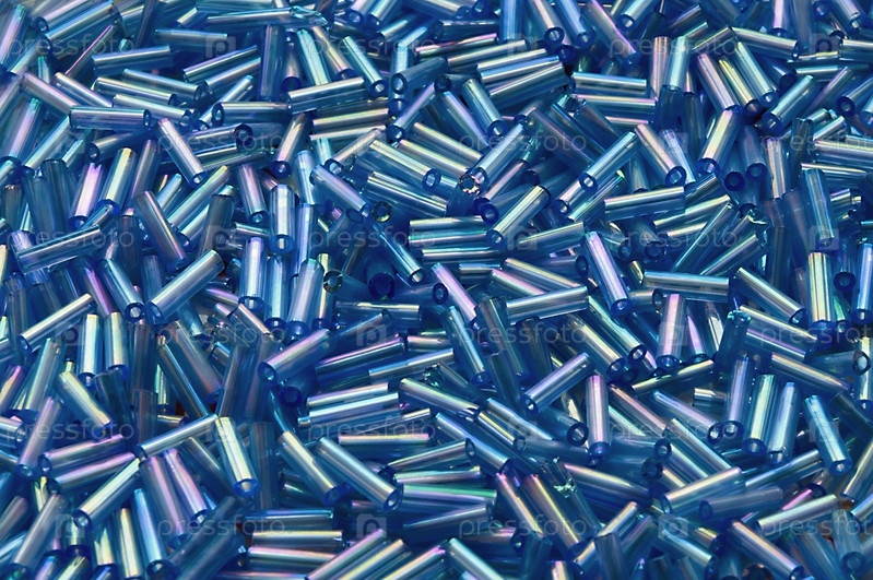 Куча голубых стеклянных бусин цилиндрической формы