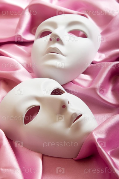 Белые театральные маски на шелковой ткани