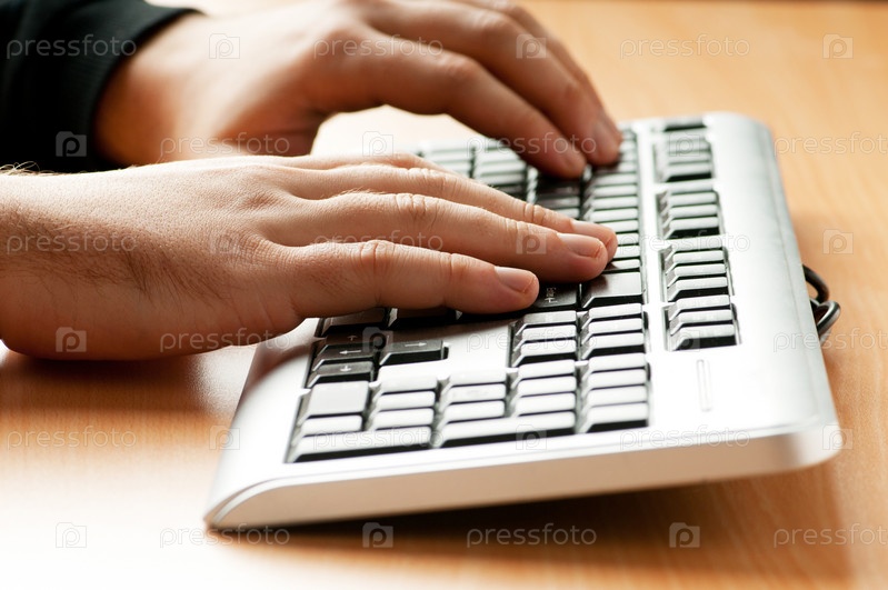 Две руки работают над серебристой клавиатурой