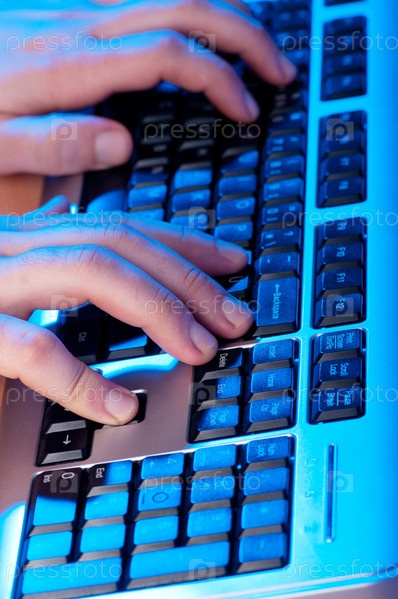 Две руки работают над серебристой клавиатурой