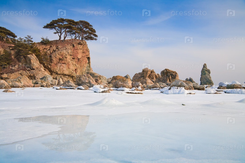 Горное побережье Японского моря зимой