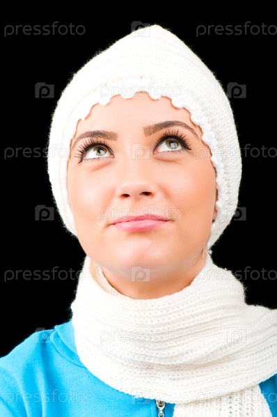 Портрет молодой девушки на черном фоне