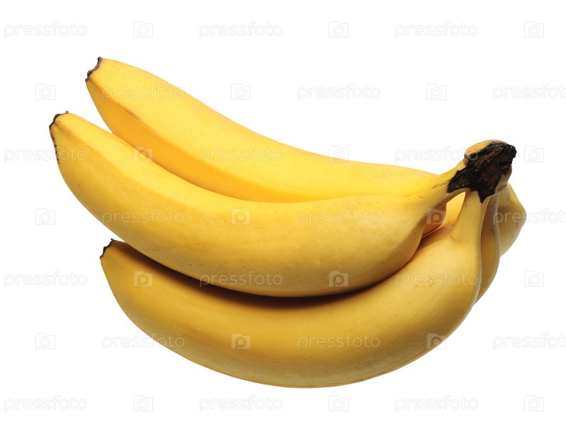 Пять спелых бананов на белом фоне