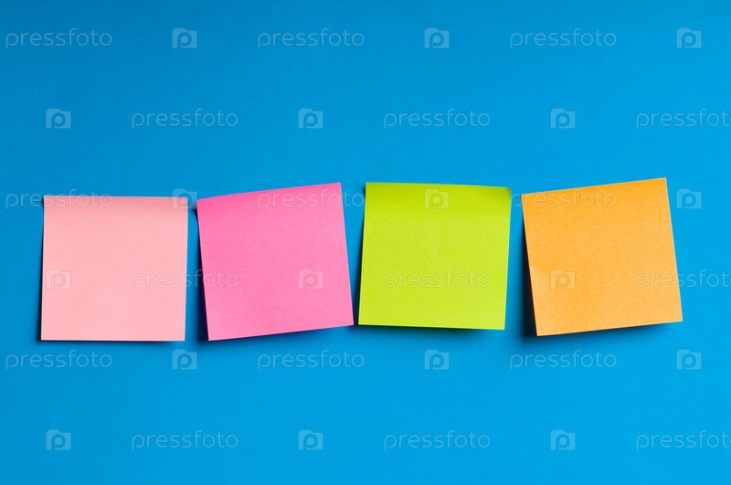 Четыре ярких разноцветных стикера на синем фоне
