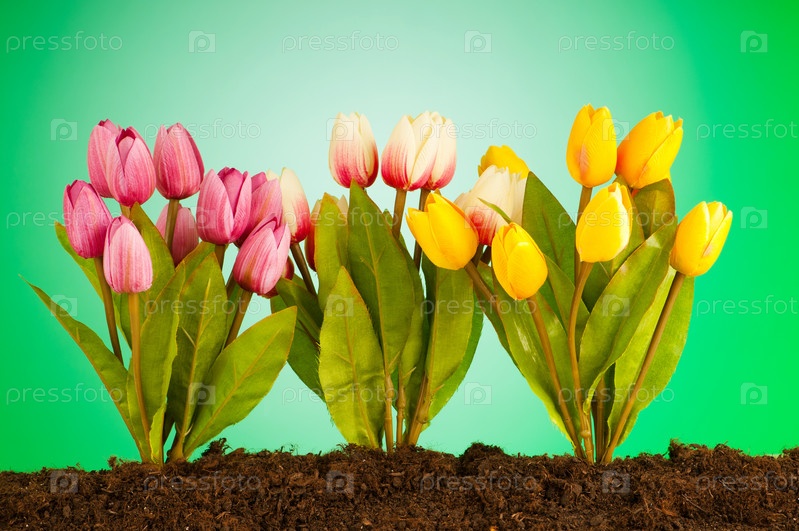 Тюльпаны, растущие в земле
