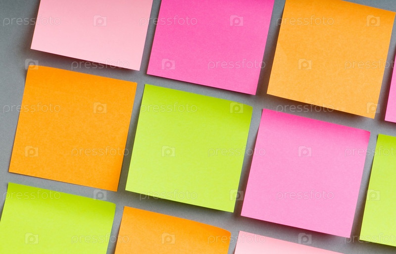 Разноцветные бумажки, приклеенные на серую стену