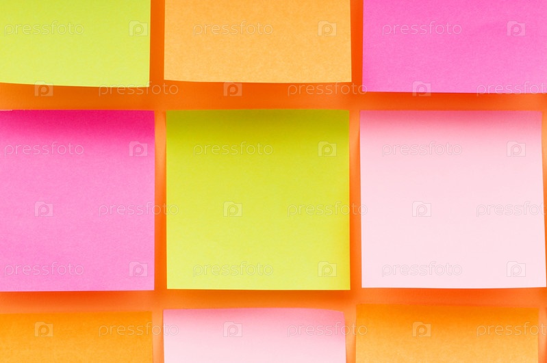 Разноцветные бумажки, приклеенные на оранжевую стену