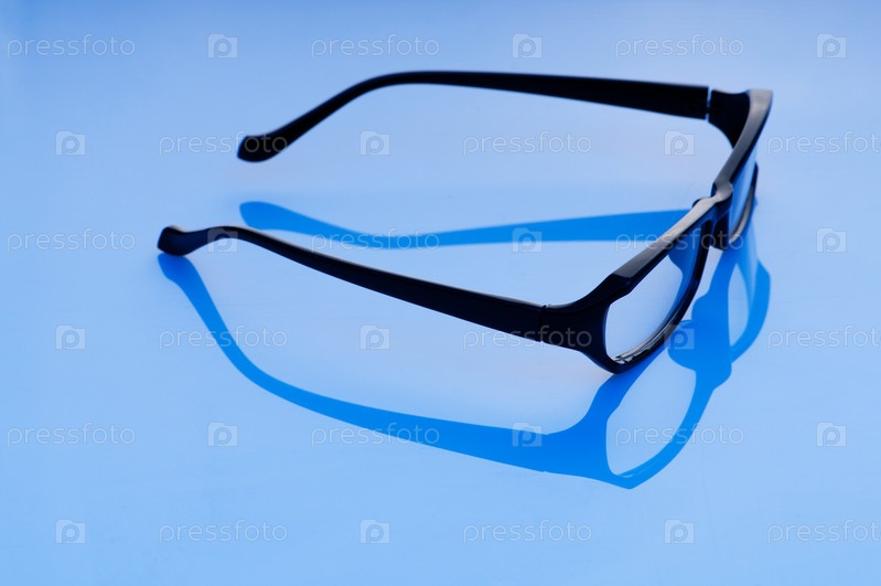 Оптические очки в черной оправе на синем фоне
