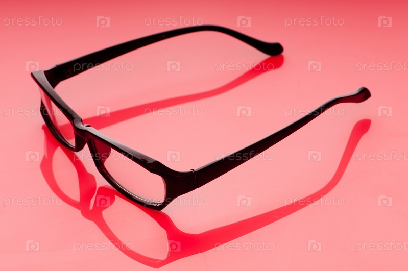Оптические очки в черной оправе на красном фоне