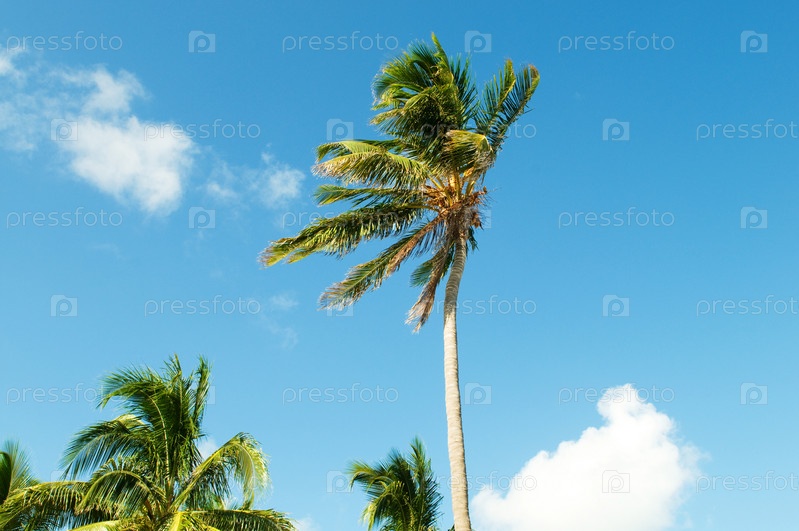 Пальмы на пляже в солнечный день
