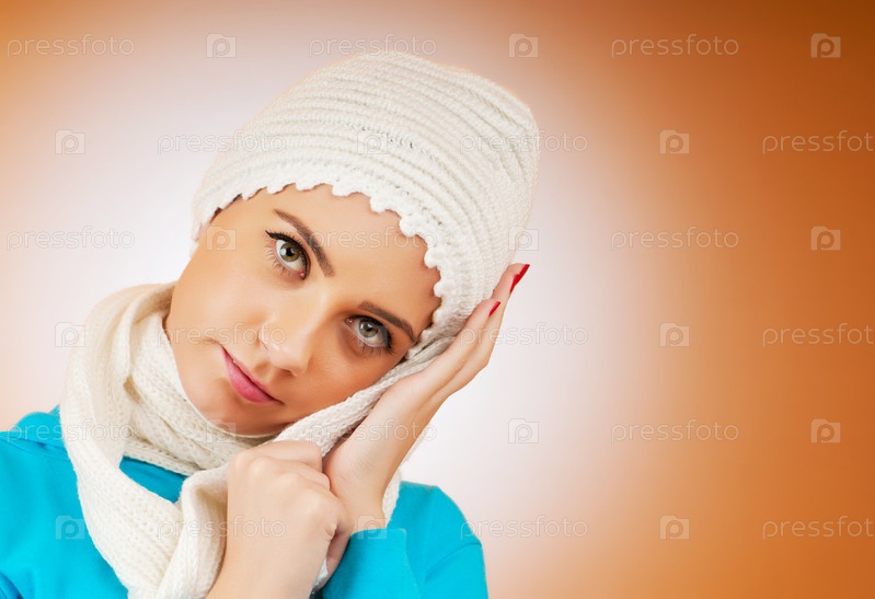 Молодая женщина в белой шапке с шарфом