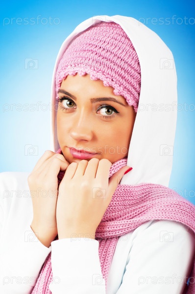 Молодая женщина в розовой шапке с шарфом