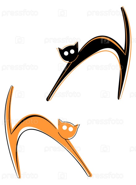 Черно-красные кошки.Векторная цветовая иллюстрация