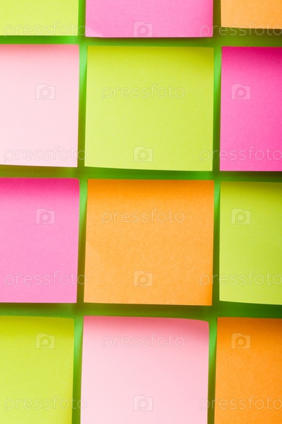 Яркие разноцветные стикеры крупным планом на зеленом фоне