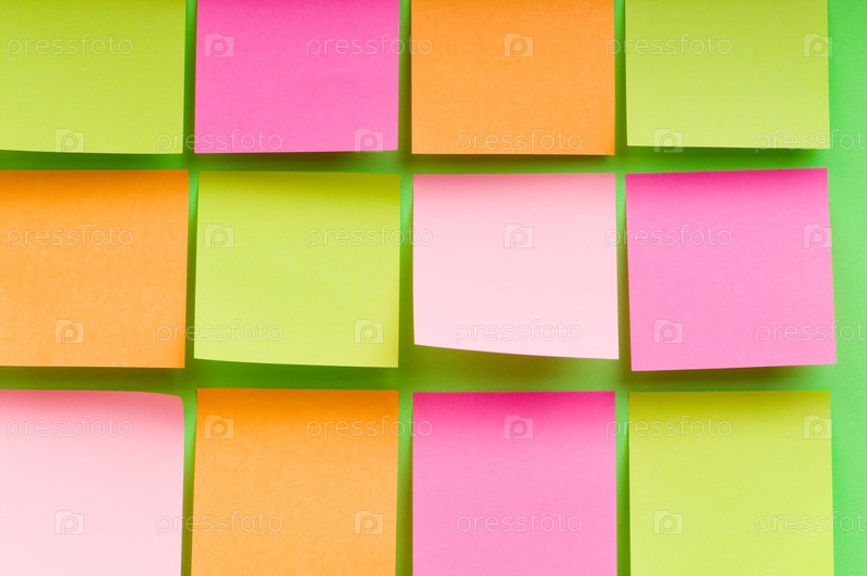 Яркие разноцветные стикеры крупным планом на зеленом фоне