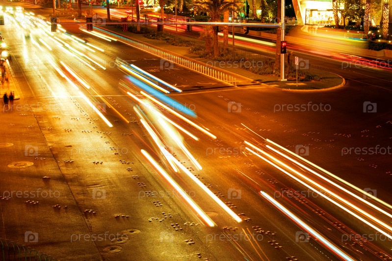 Размытые следы фар автомобилей