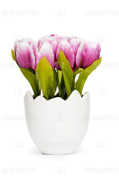 Свежие тюльпаны в белом горшке