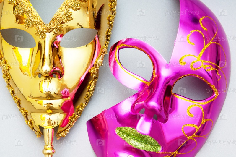 Пара цветных масок, изолированные на сером фоне