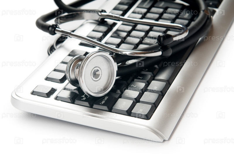 Стетоскоп и клавиатура на белом фоне