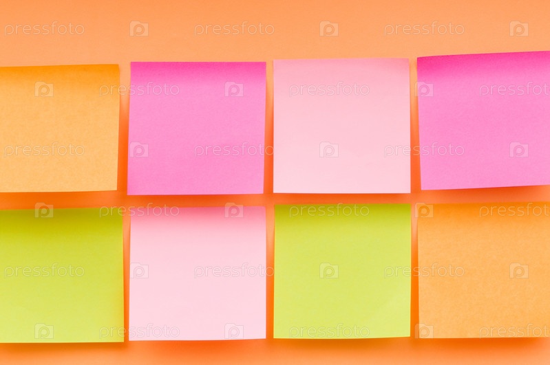 Яркие разноцветные стикеры крупным планом на оранжевом фоне