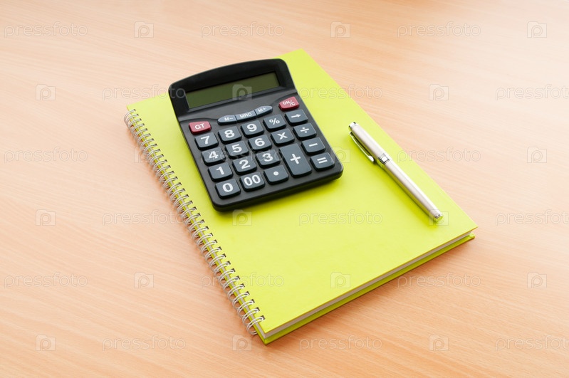 Калькулятор и ручка, лежащие на тетради