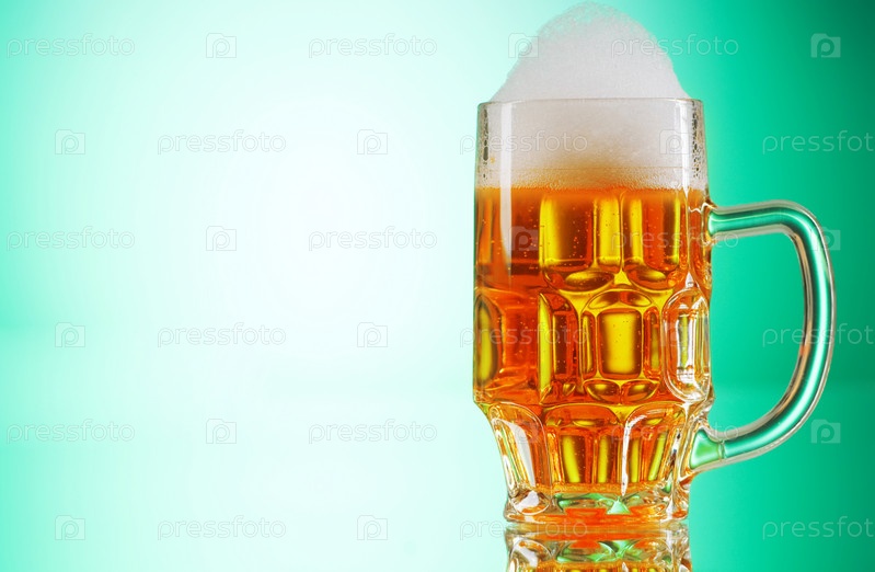 Кружка с пивом на зеленом фоне