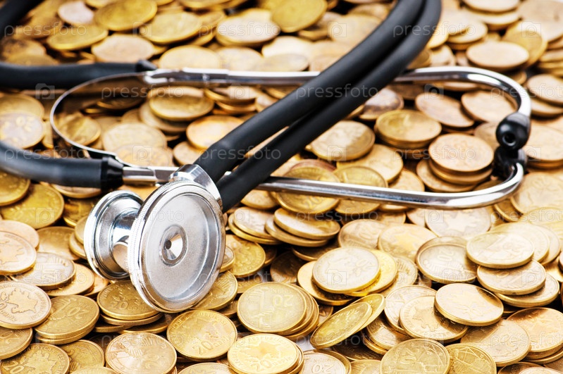 Стетоскоп, лежащий на монетах
