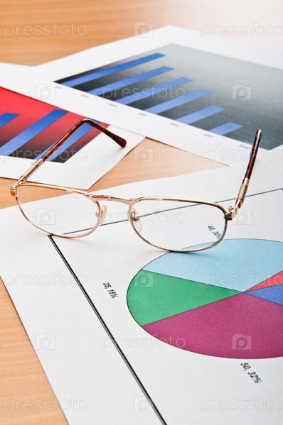 Очки на бумаге с диаграммами