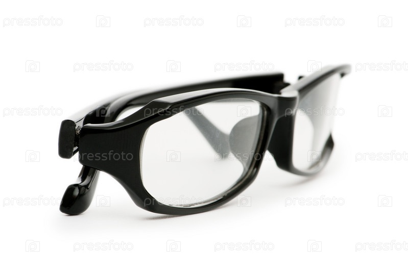 Очки в черной оправе на белом фоне