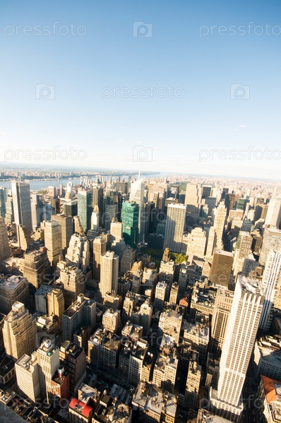Нью-Йорк, панорама города с высокими небоскребами