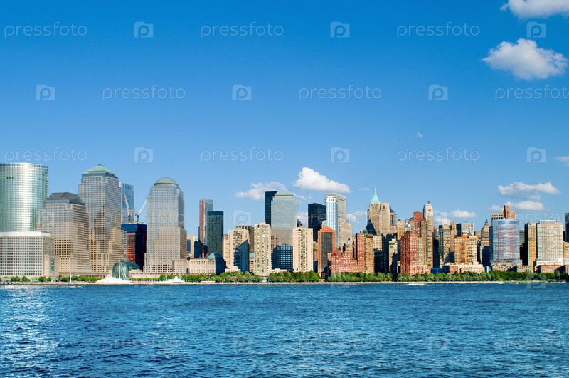 Нью-Йорк, панорама города с большими небоскребами