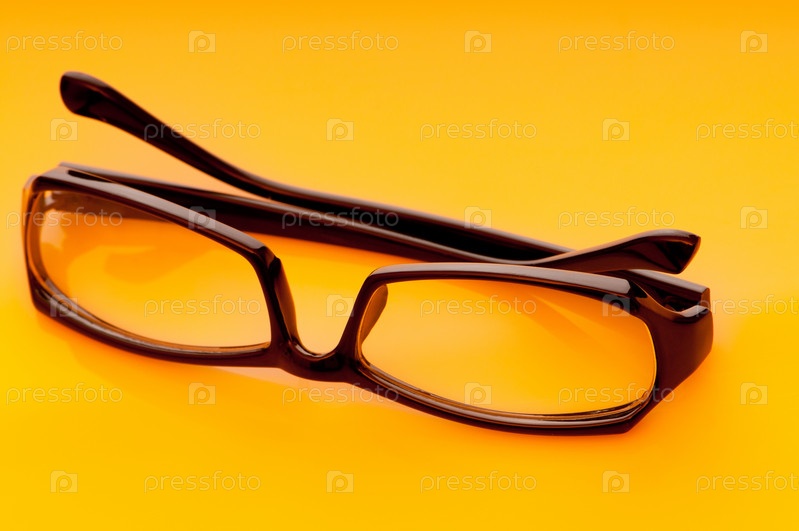 Очки в черной оправе на оранжевом фоне