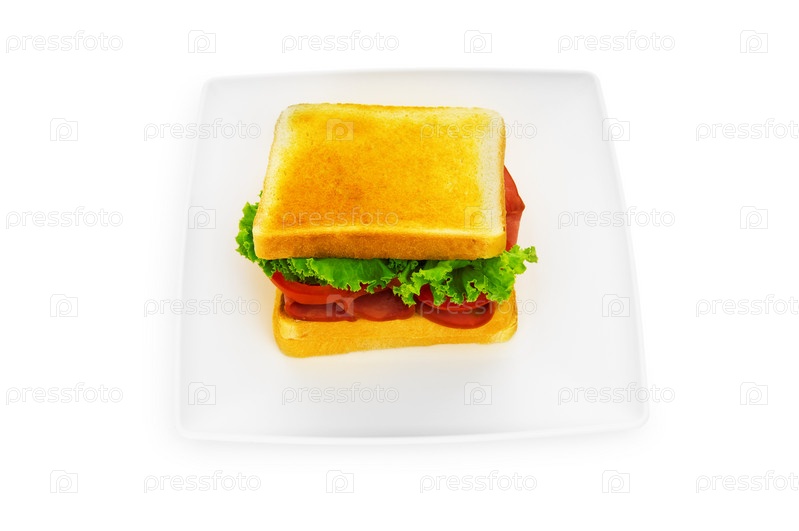 Вкусный бутерброд на белом фоне