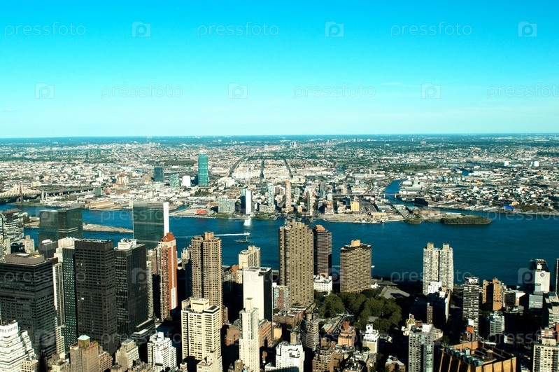 Нью-Йорк, панорама города с высокими небоскребами
