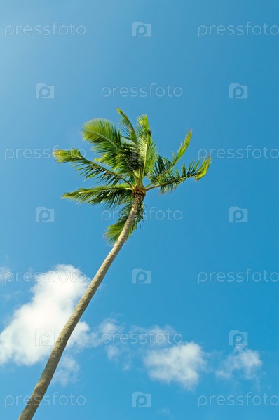 Пальма на пляже в солнечный день