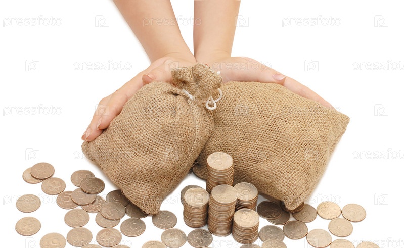 Женские руки защищают мешки с деньгами