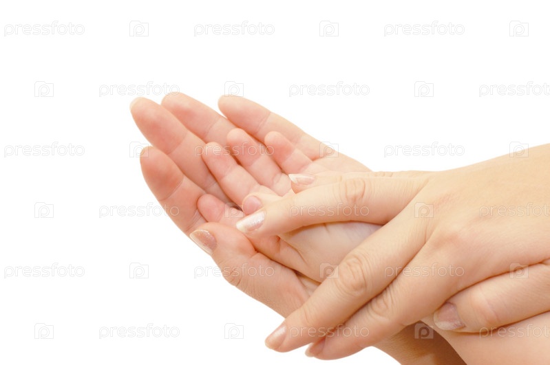 Руки матери и ребенка на белом фоне