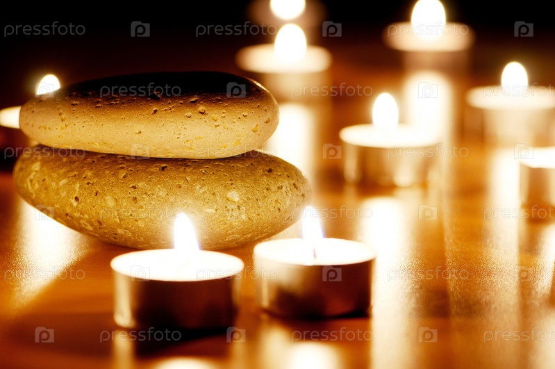 Горящие свечи и камни