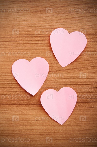 Стикеры в форме сердца на деревянном фоне