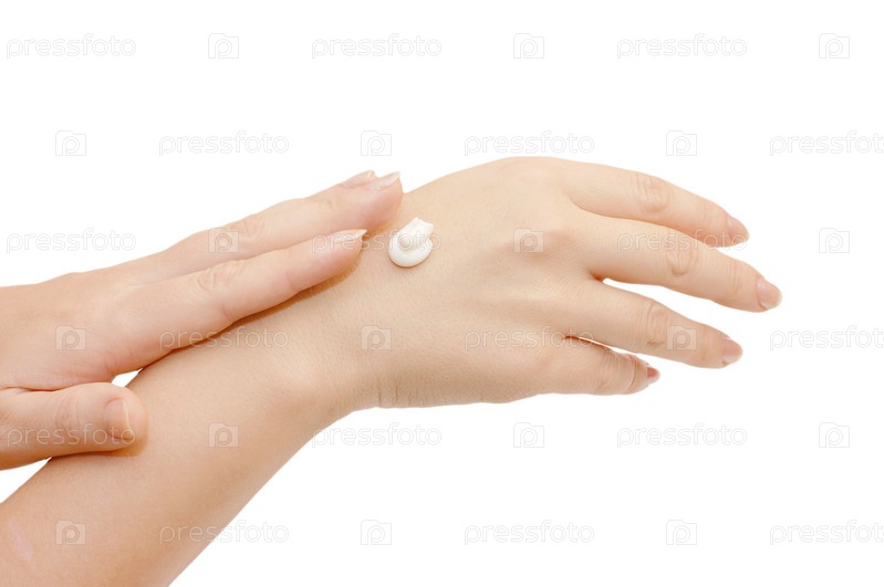 Нанесение крема на кожу рук