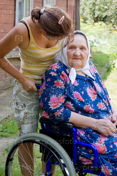 Пожилая женщина в инвалидном кресле