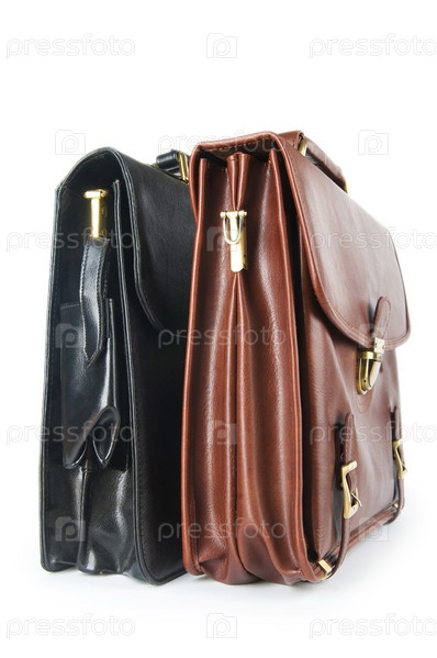 Два кожаных портфеля на белом фоне