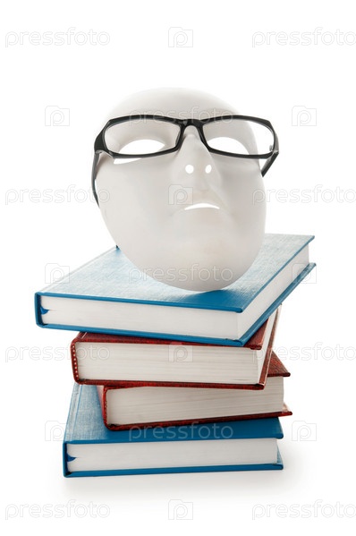 Очки на маске и стопке книг