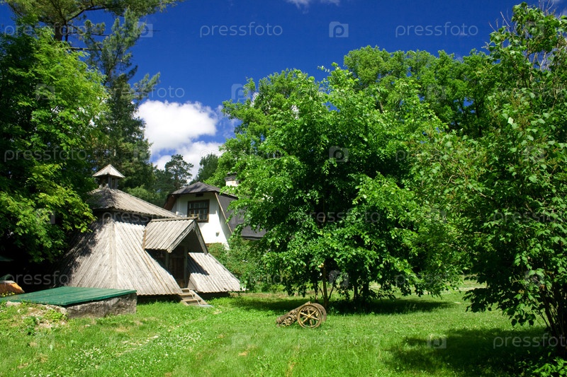 Дом среди деревьев в солнечный летний день