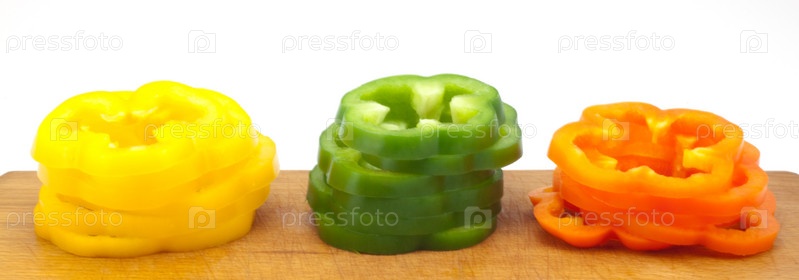 Нарезанный сладкий перец на разделочной доске крупным планом